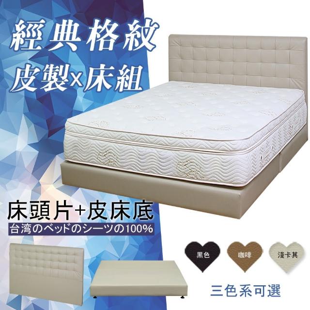 家具推薦 【HOME MALL-經典格紋皮製】加大6尺床頭片+床底(3色)