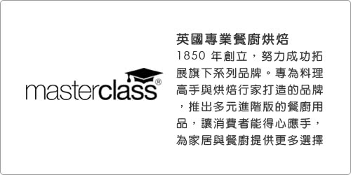 1850 年創立的英國家族企業 Kitchen Craft,在創始人努力下,成功拓展旗下的系列品牌。專為料理高手與烘焙行家打造的品牌 Master Class,推出多元進階版餐廚用品,讓使用率高的消費者也能得心應手,為家居與餐廚提供更多美好的選擇。