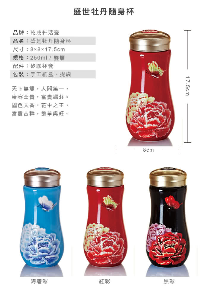 新家購物清單 【乾唐軒活瓷】盛世牡丹隨身杯 - 黑彩 - 大 - 雙層