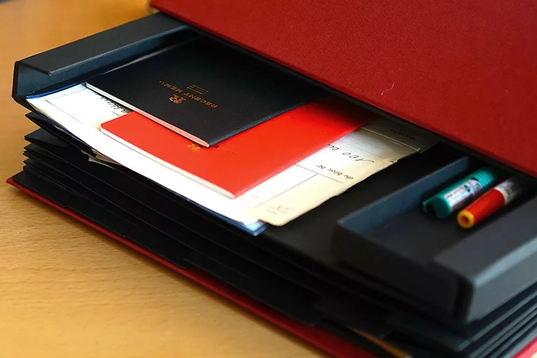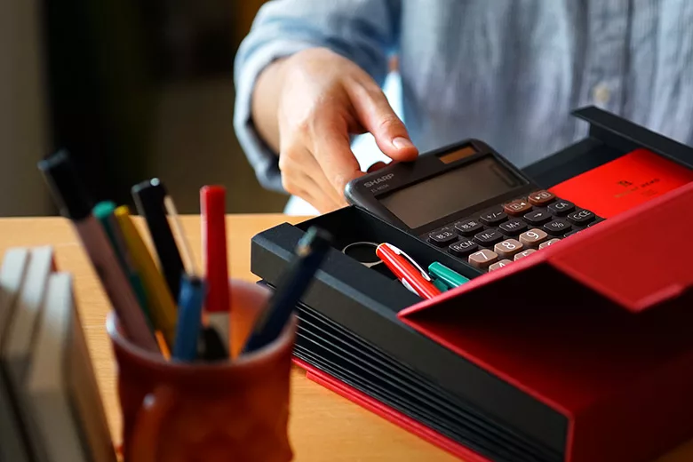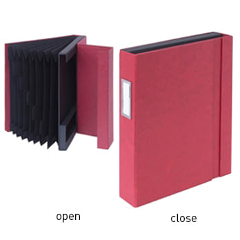 這款文件收納盒雖然同樣採用風琴夾式的收納袋、但它的設計可以讓整個收納盒維持四方平整,擺放起來一整排收納起來井然有序。此外,在收納盒內還規劃一個較大的空間可放入更厚的文件或是計算機、光碟片等小物,讓收納更有彈性。這樣的設計在文件收納夾裡非常少見。